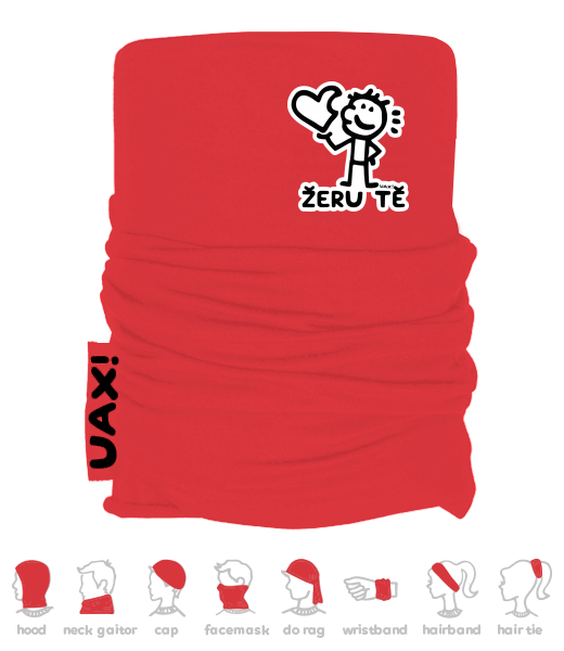 Multifunctional cotton scarf with UAX print! Made of 100% cotton, on the front of the print selection. Choice of many colors. Wrist bandages are stitched and silk-screen printed in the Czech Republic!
