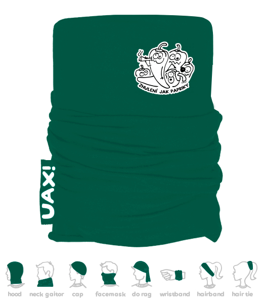 We make sustainable UAX clothing! - hand sewn in the Czech Republic uaxMen uaxAll productsMultifunctional scarvesMULTIFUNCTION COTTON SCARFdesign 1245 - ZHULENÍ JAK PAPRIKYUNIVERSITY GREEN