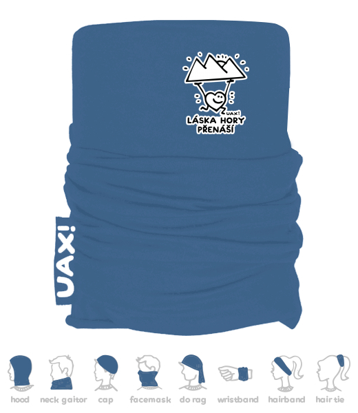 We make sustainable UAX clothing! - hand sewn in the Czech Republic uaxMen uaxAll productsMultifunctional scarvesMULTIFUNCTION COTTON SCARFdesign 1264 - LÁSKA HORY PŘENÁŠÍMOONLIGHT BLUE