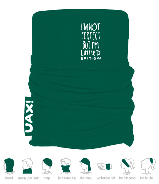We make sustainable UAX clothing! - hand sewn in the Czech Republic uaxMen uaxAll productsMultifunctional scarvesMULTIFUNCTION COTTON SCARFdesign 1289 - IM NOT PERFECTUNIVERSITY GREEN
