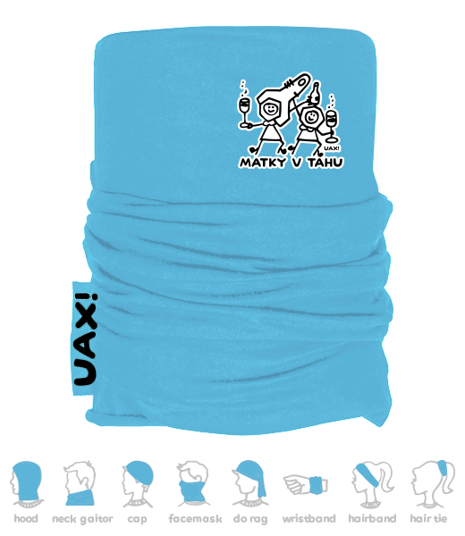 Multifunctional cotton scarf with UAX print! Made of 100% cotton, on the front of the print selection. Choice of many colors. Wrist bandages are stitched and silk-screen printed in the Czech Republic!