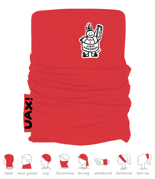 We make sustainable UAX clothing! - hand sewn in the Czech Republic uaxMen uaxAll productsMultifunctional scarvesMULTIFUNCTION COTTON SCARFdesign 1353 - JSEM KONZERVA WOMENRED
