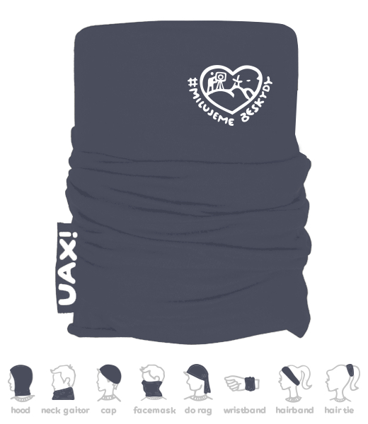 Multifunctional cotton scarf with UAX print! Made of 100% cotton, on the front of the print selection. Choice of many colors. Wrist bandages are stitched and silk-screen printed in the Czech Republic!