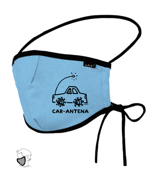 Protective respiratory cotton mask karantena for man with design 1284 CAR-ANTENA in color BLUE ATOLL