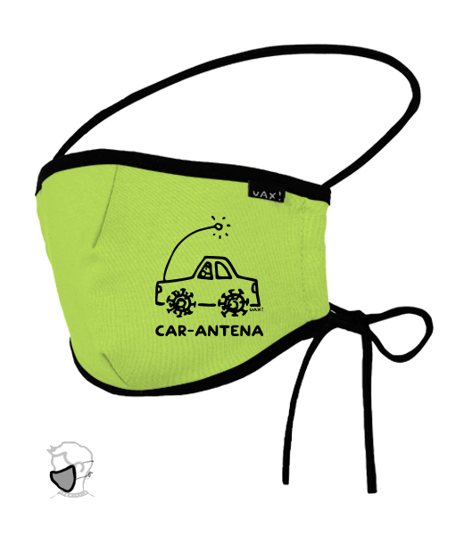 Protective respiratory cotton mask karantena for man with design 1284 CAR-ANTENA in color PARROT GREEN