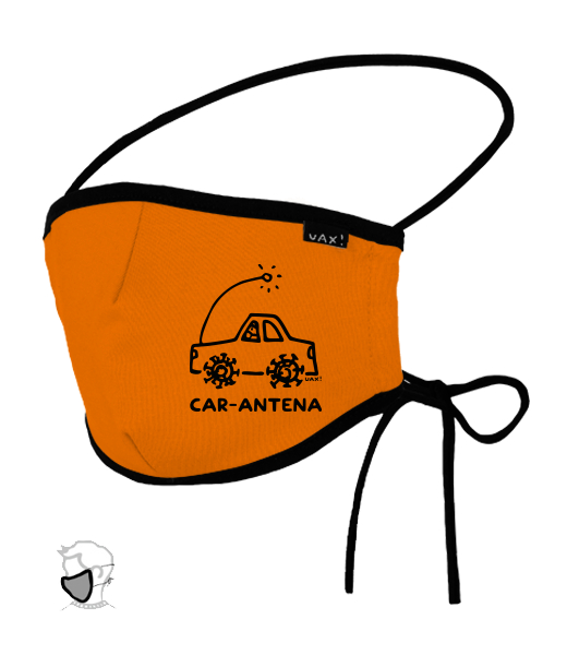 Protective respiratory cotton mask karantena for man with design 1284 CAR-ANTENA in color SIGNAL ORANGE