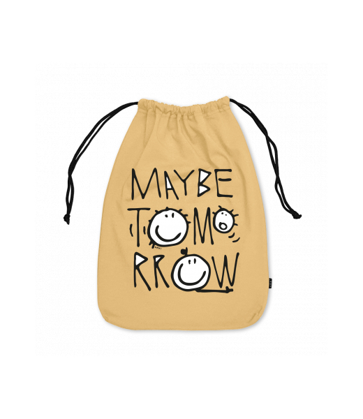 Small cotton pouch for man with design 1001 MAYBE TOMORROW in color MUSTARD