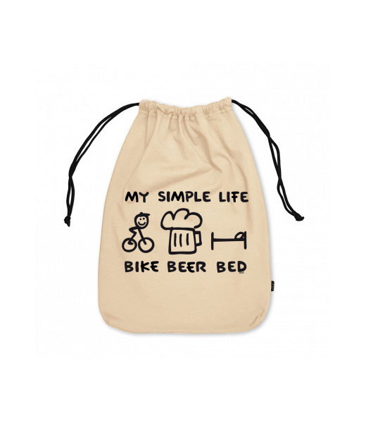 Small cotton pouch for man with design 1056 BIKE BEER BED in color CARAMEL