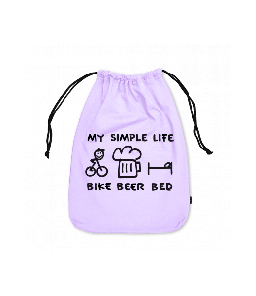 Small cotton pouch for man with design 1056 BIKE BEER BED in color LAVENDER