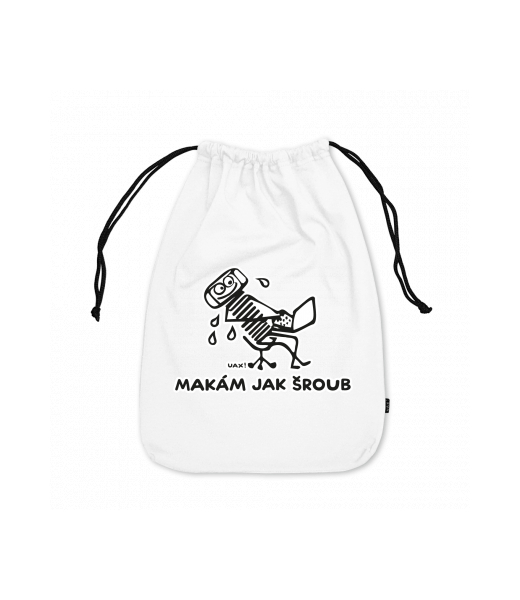 Small cotton pouch for man with design 1061 MAKÁM JAK ŠROUB in color WHITE