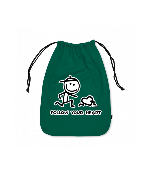 Small cotton pouch for man with design 1063 FOLOW YOUR HEART in color UNIVERSITY GREEN