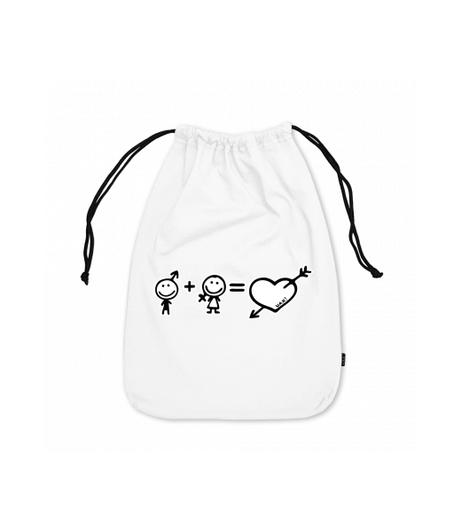 Small cotton pouch for man with design 1065 MATH OF LOVE in color WHITE