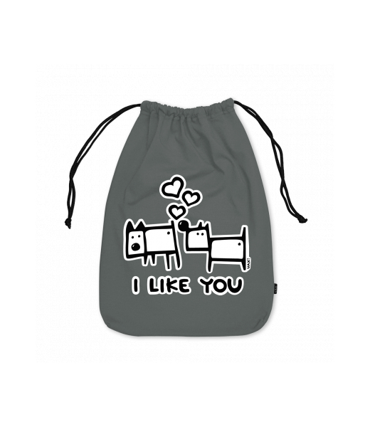 Small cotton pouch for man with design 1066 I LIKE YOU in color DARK GRAY