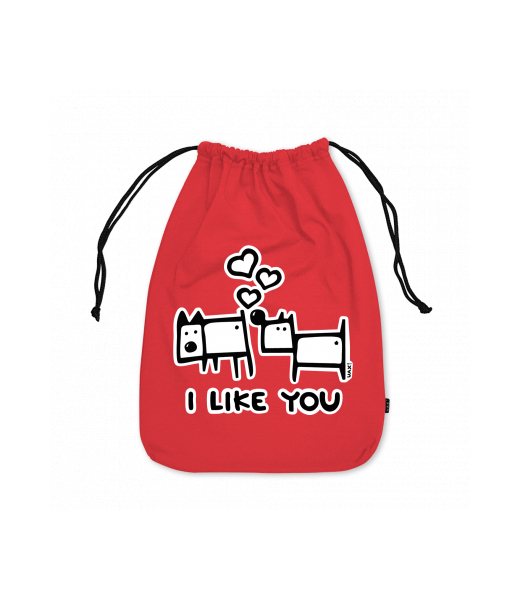 Small cotton pouch for man with design 1066 I LIKE YOU in color RED