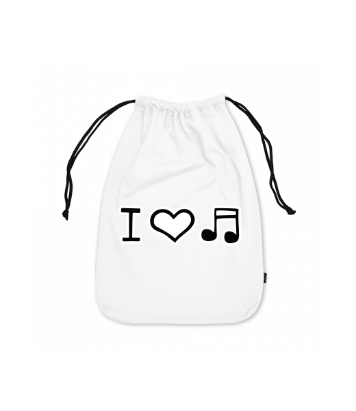 Small cotton pouch for man with design 1067 I LOVE MUSIC in color WHITE