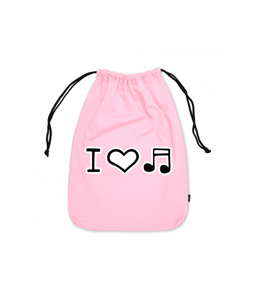 Small cotton pouch for man with design 1067 I LOVE MUSIC in color BABY PINK