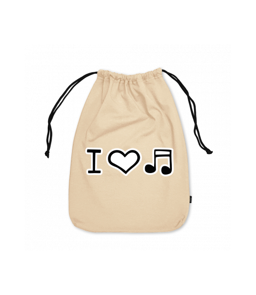 Small cotton pouch for man with design 1067 I LOVE MUSIC in color CARAMEL