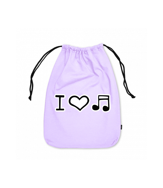 Small cotton pouch for man with design 1067 I LOVE MUSIC in color LAVENDER