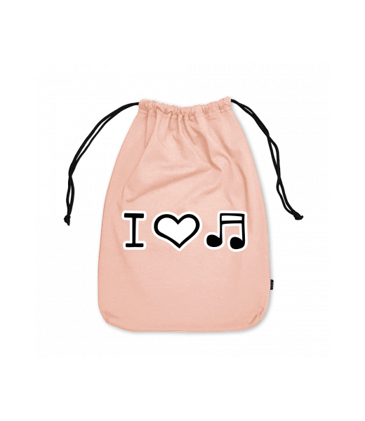 Small cotton pouch for man with design 1067 I LOVE MUSIC in color PEACH