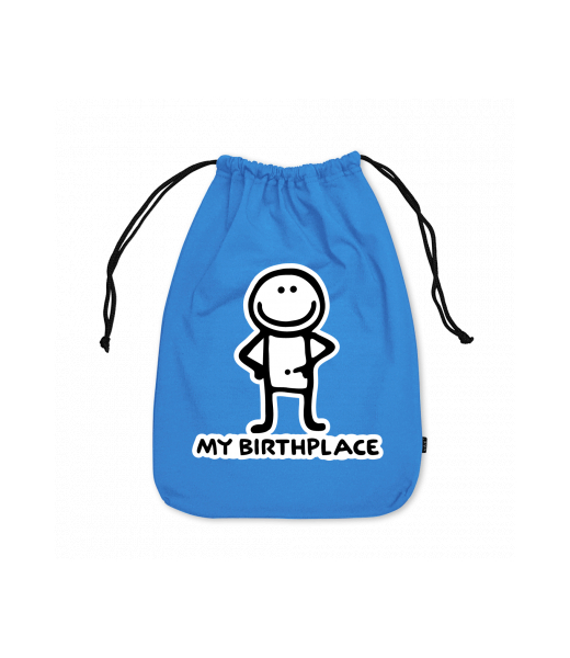 Small cotton pouch for man with design 1069 MY BIRTHPLACE in color CAPRI BLUE