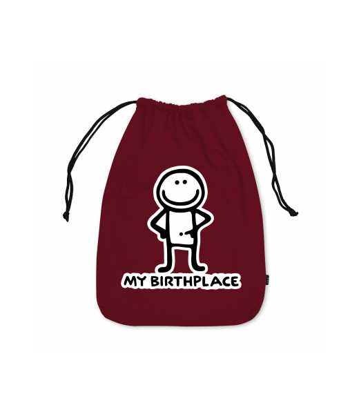 Small cotton pouch for man with design 1069 MY BIRTHPLACE in color DARK RED