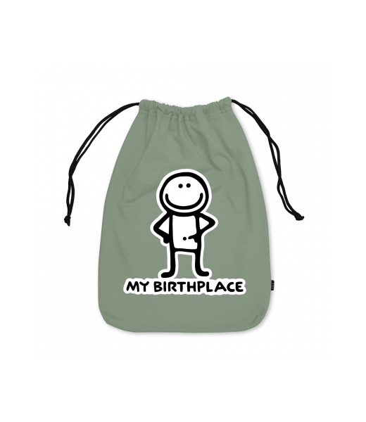 Small cotton pouch for man with design 1069 MY BIRTHPLACE in color OLIVA