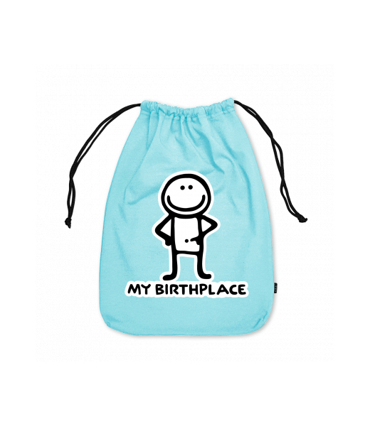 Small cotton pouch for man with design 1069 MY BIRTHPLACE in color PASTEL BLUE