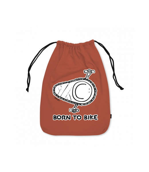 Small cotton pouch for man with design 1074 BORN TO BIKE in color TERRA