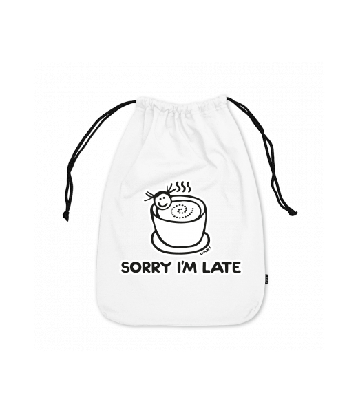 Small cotton pouch for man with design 1087 SORRY IM LATE in color WHITE