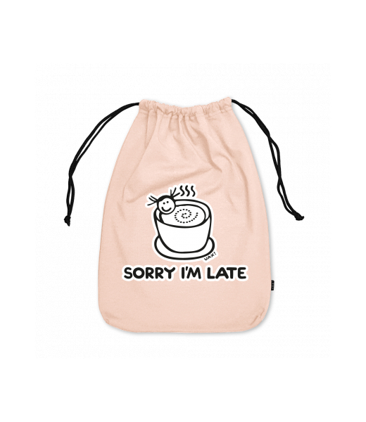 Small cotton pouch for man with design 1087 SORRY IM LATE in color CAPPUCINO