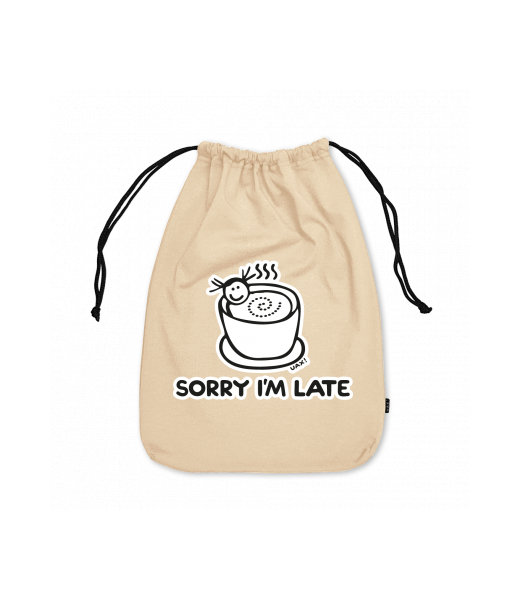 Small cotton pouch for man with design 1087 SORRY IM LATE in color CARAMEL