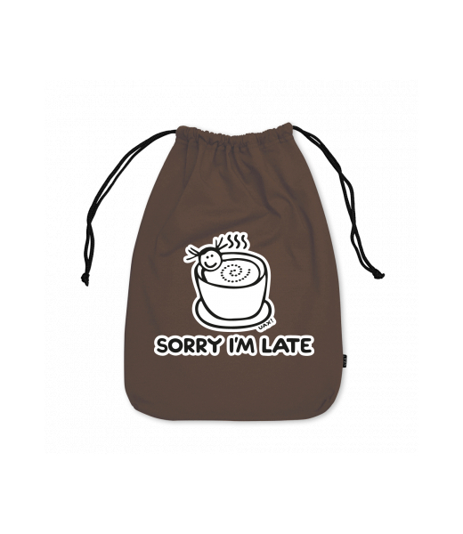 Small cotton pouch for man with design 1087 SORRY IM LATE in color CHESTNUT