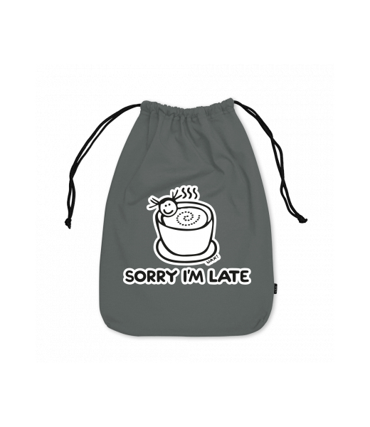 Small cotton pouch for man with design 1087 SORRY IM LATE in color DARK GRAY