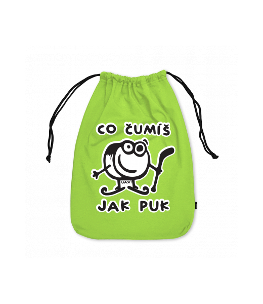 Small cotton pouch for man with design 1101 ČUMÍŠ JAK PUK in color PARROT GREEN