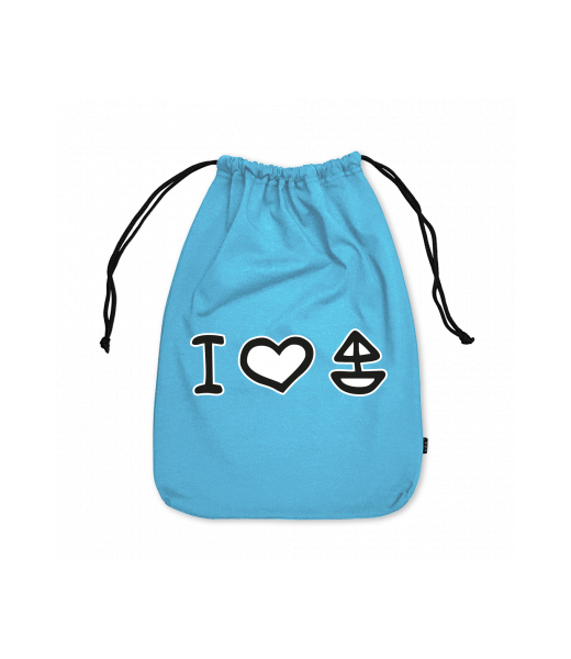 Small cotton pouch for man with design 1102 I LOVE YACHTING in color BLUE ATOLL
