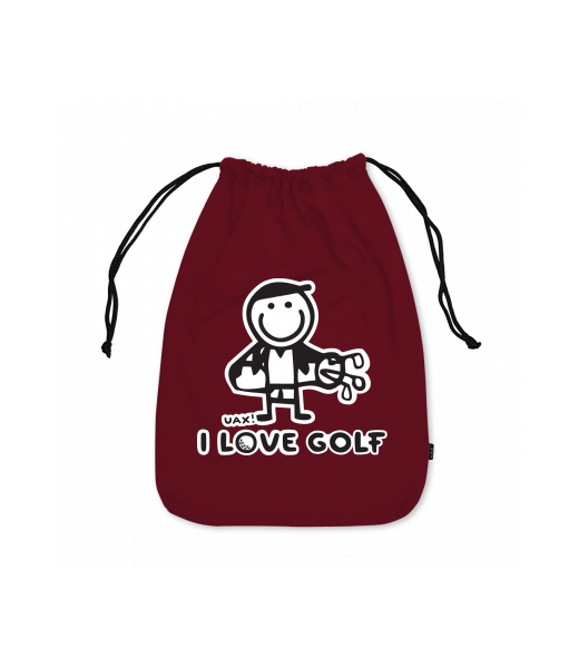 Small cotton pouch for man with design 1107 I LOVE GOLF in color DARK RED
