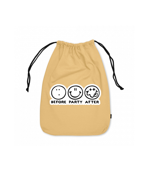 Small cotton pouch for man with design 1120 BEFORE PARTY AFTER in color MUSTARD
