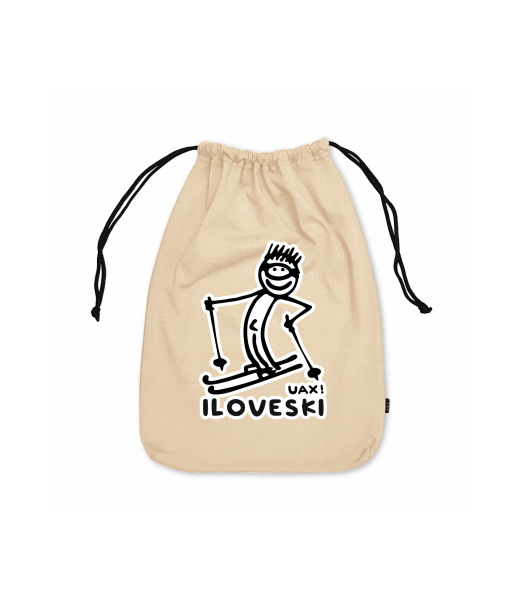 Small cotton pouch for man with design 1122 I LOVE SKI in color CARAMEL