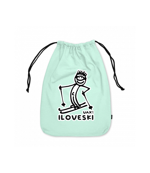 Small cotton pouch for man with design 1122 I LOVE SKI in color MINT
