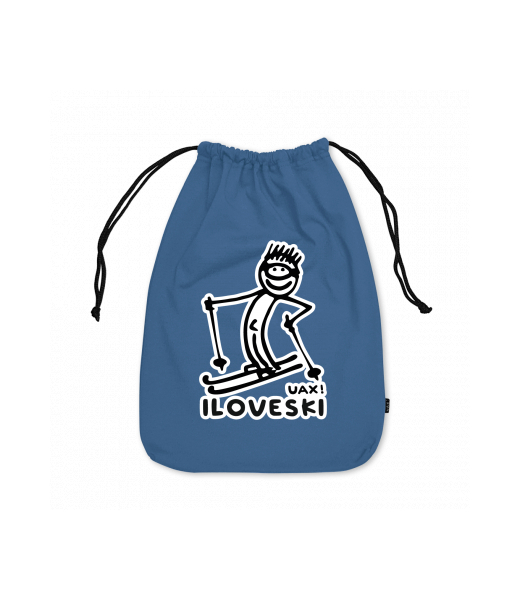 Small cotton pouch for man with design 1122 I LOVE SKI in color MOONLIGHT BLUE