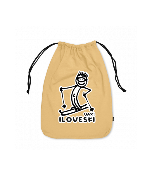 Small cotton pouch for man with design 1122 I LOVE SKI in color MUSTARD