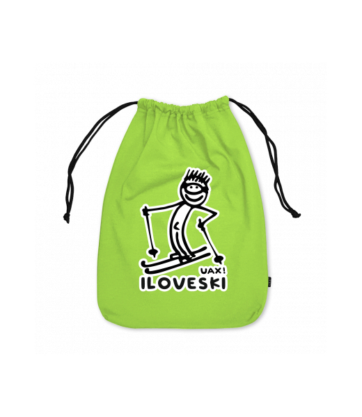 Small cotton pouch for man with design 1122 I LOVE SKI in color PARROT GREEN