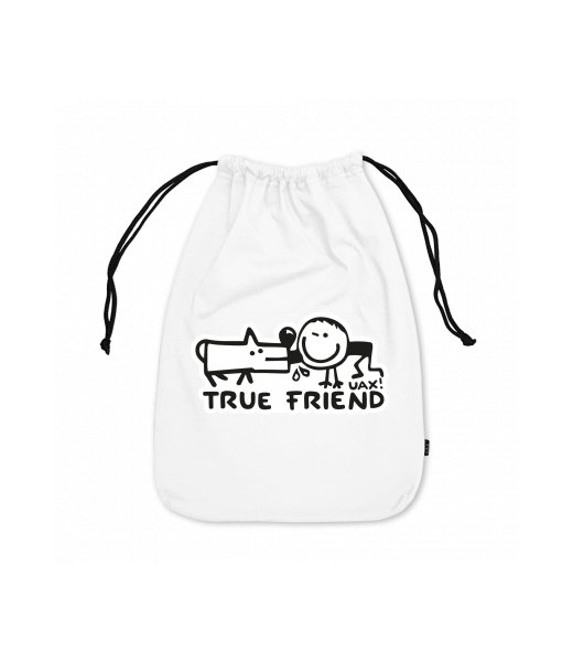 Small cotton pouch for man with design 1123 TRUE FRIEND in color WHITE
