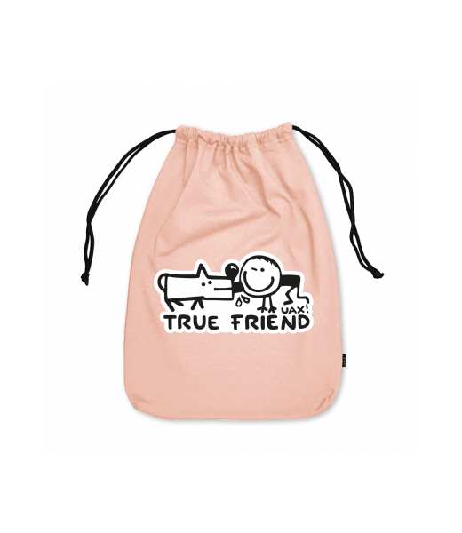 Small cotton pouch for man with design 1123 TRUE FRIEND in color PEACH