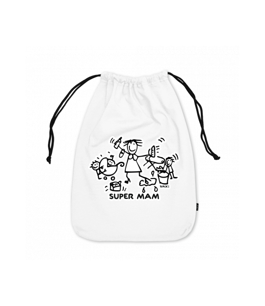 Small cotton pouch for man with design 1126 SUPER MAM in color WHITE