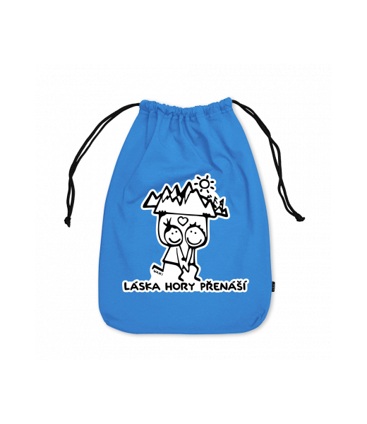 Small cotton pouch for man with design 1128 LÁSKA HORY PŘENÁŠÍ in color CAPRI BLUE