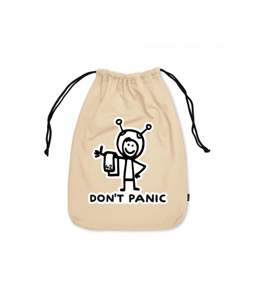 Small cotton pouch for man with design 1157 DON'T PANIC in color CARAMEL