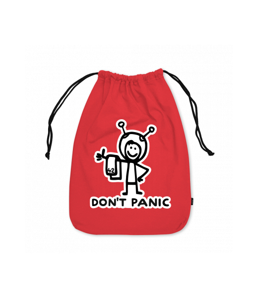 Small cotton pouch for man with design 1157 DON'T PANIC in color RED