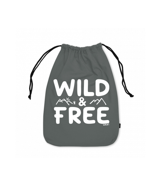 Small cotton pouch for man with design 1161 WILD AND FREE in color DARK GRAY