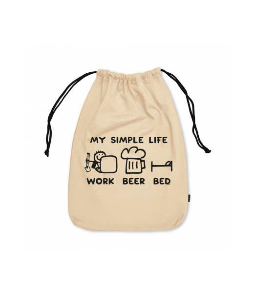 Small cotton pouch for man with design 1211 MY SIMPLE LIFE WORK BEER BED in color CARAMEL
